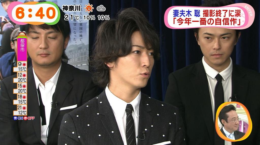 上地還說了在撮影期間大家一起去了巖盤浴和大浴場非常的開心、在KTV裏「kame一直在唱KAT-TUN的歌。聡一直在旁邊敲鈴鼓、壯亮在敲響板、你(勝地)是不是沙錘來著? 然後宮崎葵在唱和聲」。龜梨吐槽說「能不能別給我們每個人都加上意味不明的設定?」,看著這樣即使抱怨了之後依然被欺負的亀梨fan們非常開心。