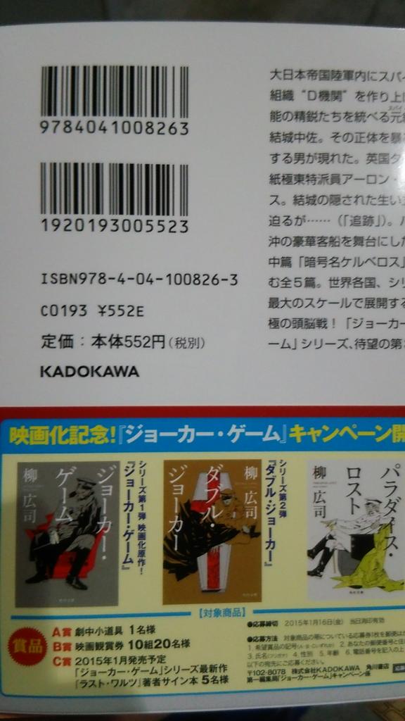 Joker Game 原著全部加上了電影POP...............超期待這部電影....