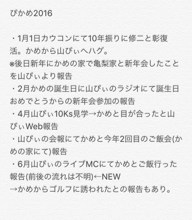 【山P大宮6/14】近況 2日くらい前に亀梨とご飯、焼肉に行ったよ。俺ね、かつんの充電期間前のコンサート見に行ったのね、そういうはなしとか、あと、むかし同じ方面に住んでたから、よく一緒に帰ったねーってはなしとかもしたよ。