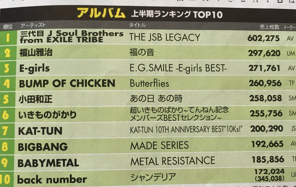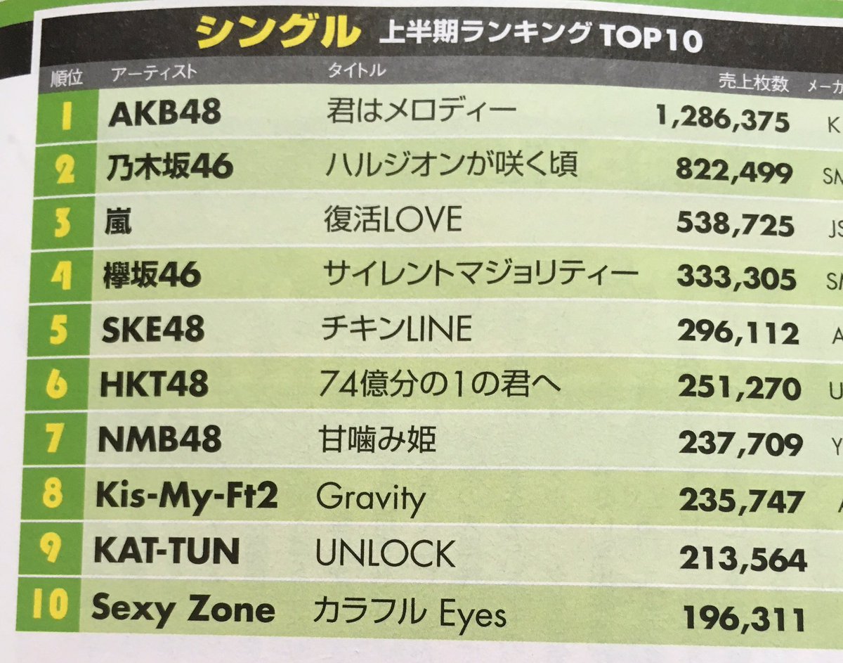 由日経エンタメ發表的2016上半年各樣排名中....KAT-TUN也有上榜....包括