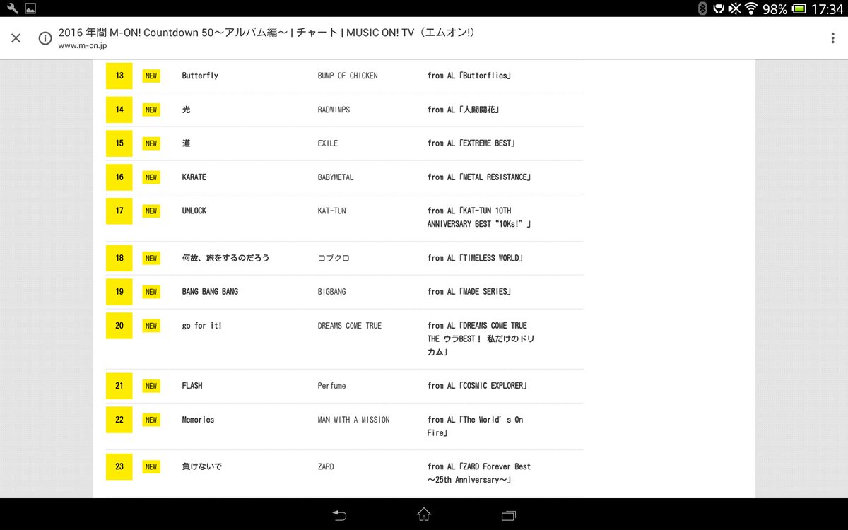 [消息] 20161225 M-ON! Countdown 50 Album 編 ~ UNLOCK 17位