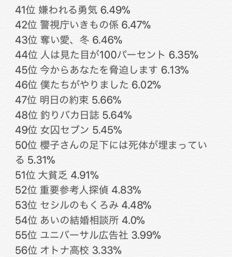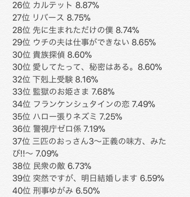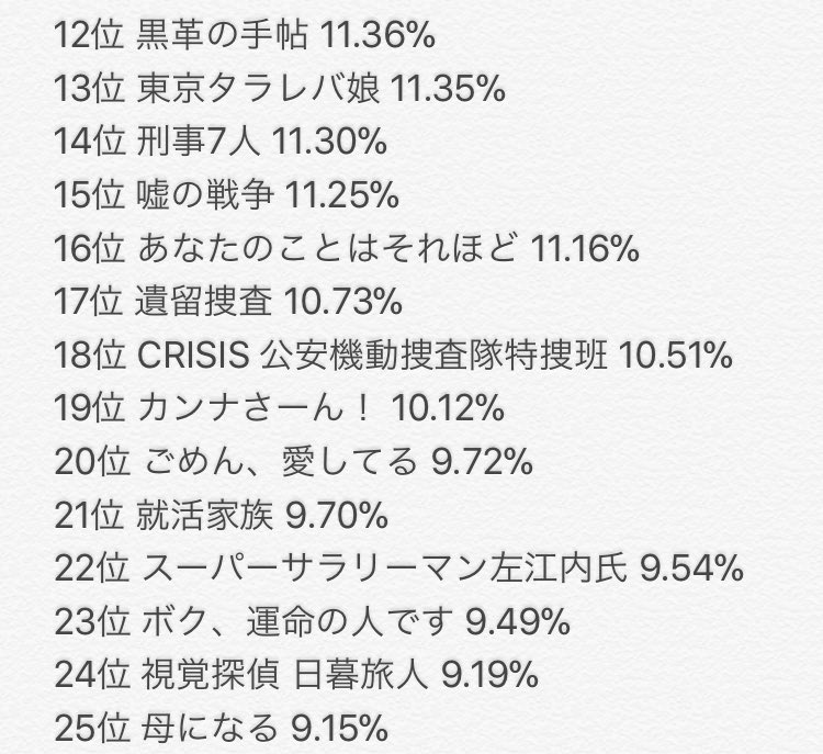 [情報] 20171226 2017年電視平均收視 ~ボク運 23位 9.49%