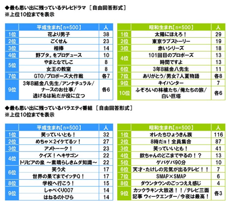 [投票] 20180509 新力生命的調查留下最深刻印象的電視劇 - 平成出生組 2位 極道鮮師, 4位 野豬大改造, 9位 金八老師